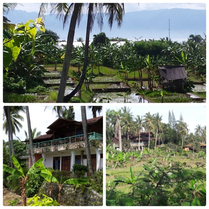 Na drie uur rijden arriveren we bij Hotel Lagusa en de sfeer bevalt ons meteen. Onze kamer is een twee-onder-een kap met uitzicht op sawahs en de zee. Eerst maar ontbijten: nasi goreng met kopi teh! Hotel Lagusa ligt op een heuvel en bestaat uit vrijstaande huisjes, variërend van gezinshuizen tot onze twee-onder-een kap kamers. De zee is in 10 minuten bereikbaar via een pad door de sawahs, prachtig!