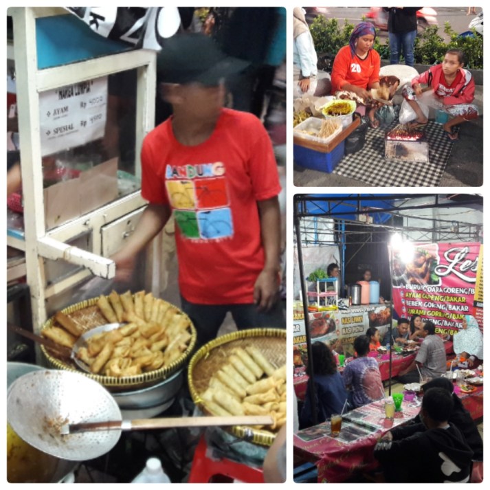 Op nieuwjaarsdag maken we onze wenskaart 2018 en gaan daarna onze volgende vliegreizen boeken: van Ambon naar Sulawesi om de Toraja-dodencultuur te zien en vervolgens door naar Surabaya om de actieve vulkanen Bromo en Ijen te bezoeken. Door een gemotoriseerde becak komen we op de Jalan Malioboro, dè winkelstraat van Yogya. Ina zoekt kleding waarin ze comfortabel kan reizen, dat niet te bloot is om de Indonesiërs niet voor het hoofd te stoten en dat ook nog een moderne look heeft. Dit programma van eisen blijkt een stevige opdracht om te realiseren. Winkel in, winkel uit, mall in, mall uit. We pauzeren voor koffie met gebak, want we hebben wat te vieren: onze eerste dag van ons ‘pensioen’. Inmiddels is het donker geworden en maken de kledingstalletjes plaats voor eettentjes. Overal wordt op straat gekookt, gebakken, gewokt en geroosterd en het ruikt heerlijk. We eten saté ayam en 20 stappen verder kunnen we de verleiding van loempia’s niet weerstaan. We moeten hier weg ……!