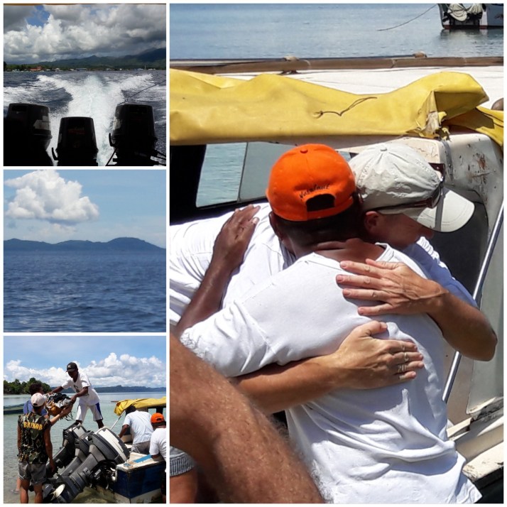 De boot vaart recht op Leinitu af en als we de baai invaren, zien we Jerri op het strand staan. Uitbundig zwaait hij met twee armen in de lucht. Het doet ons denken aan 2006 toen hij ons op precies hetzelfde plekje als waar hij nu staat bij ons vertrek lang uitzwaaide. Het is alsof hij al die tijd op het strand ons heeft opgewacht. De begroeting is allerhartelijkst.