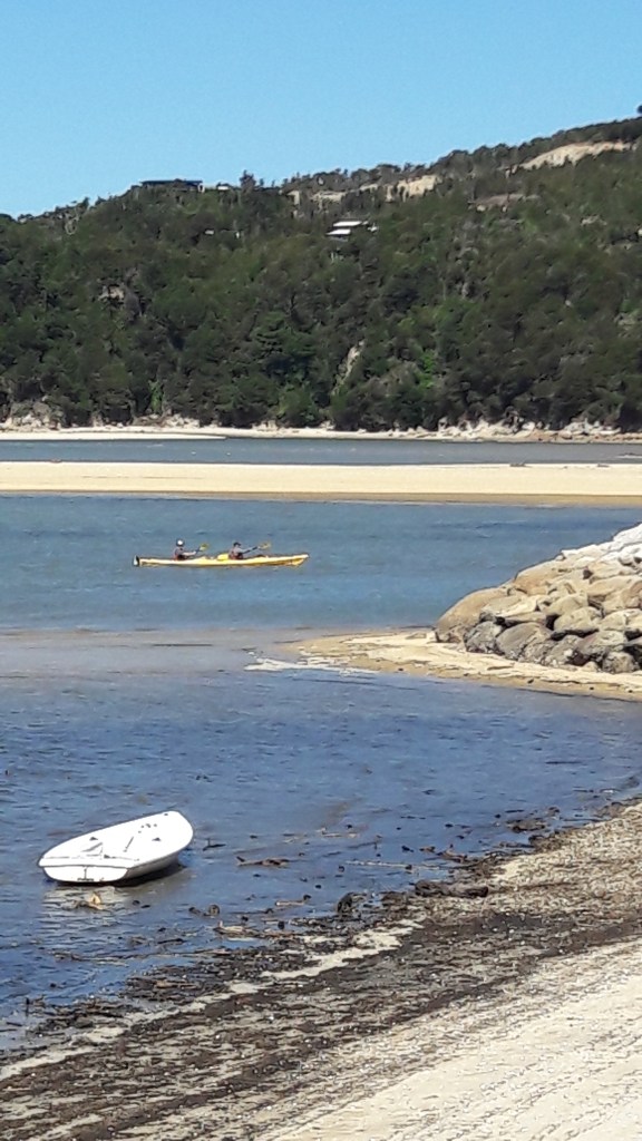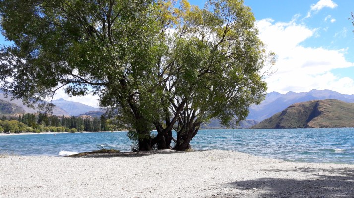 Het is prachtig weer, weinig wind, veel zon en de sandflies blijken niet te bijten. Aan het einde van de ochtend staan we helemaal alleen op het veldje en verplaatsen we de camper naar de meest strategische plek: daar waar niet een camper pal naast ons kan gaan staan. De dag verglijdt met lezen, zwemmen en luieren. ’s Avonds stroomt het veldje weer vol en onze strategische plek werkt aardig.