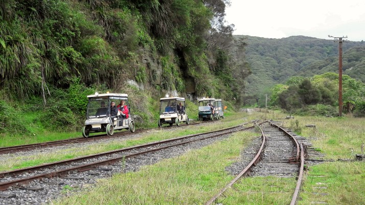 Na een half uur gaan we eruit, want de dampen stijgen ons naar het hoofd en we krijgen wat last van prikkende ogen. Na het afdouchen krijgen we nog instructies mee: de eerste 24 uur geen sieraden dragen en het gebruikte zwemgoed los van andere kleren wassen. Na twee dagen ruiken we nog steeds naar zwavel….. Tegen de schemering komen we aan bij onze overnachtingsplaats en opnieuw staan we op het terrein van een Nieuw-Zeelander. Gastheer Peter Dorfliger, een grijs bebaarde 60plusser, ontvangt ons hartelijk en vertelt in het kort zijn levensverhaal. Als jonge Zwitser is hij naar Nieuw-Zeeland gevlogen, op een motor rond getrokken op zoek naar werk en terecht gekomen bij een gezin met 3 huwbare dochters. Hij zocht de mooiste uit, trouwde haar, bouwde zijn eigen houten woonhuis en kreeg vervolgens opdrachten om voor anderen ook een huis te bouwen. Hierdoor ontstond zijn bedrijf, waardoor we ook meteen de zagerij met vele houtbewerkingsmachines op zijn terrein begrijpen.