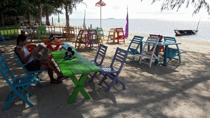 We raken met de eigenaren in gesprek. Als de man vraagt hoe wij heten, kan hij de naam ‘Jeroen’ moeilijk uitspreken. “That is too difficult. You must have an Indonesian name,” zegt hij tegen Jeroen. “You can call him ‘Yun’. That sounds Indonesian,” zegt Ina. Dat vindt hij een goed idee en elke keer als wij hem tegenkomen, begroet hij Jeroen met: “Hello mister Yun!”. Op het terrein heeft het echtpaar een nieuw vakantiehuisje geplaatst. Hij vraagt ons of we het willen zien en wat we er van vinden. Nieuwsgierig als we altijd zijn naar huisjes en interieur, willen we dat wel. Het ziet er modern uit in tegenstelling tot de traditionele huisjes die er staan. Het zou prima passen in een mediterraan land. Het past echter niet zo goed bij de stijl van de andere huisjes, waardoor het naar onze smaak een ratjetoe wordt. New Marjoly Beach Resort heeft een fantastische keuken. Elke ochtend genieten we van een ontbijt met traditionele gerechten van Bintan. Men houdt wel van pittig eten en dat kunnen wij ook waarderen. De dagen kabbelen voorbij. Wat kunnen wij toch enorm genieten van niets doen.