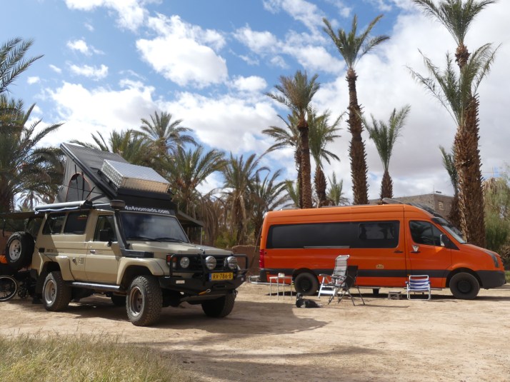 ’s Ochtends nemen we afscheid van Ron en Trees. Zoals altijd houden we contact en we zullen elkaar weer treffen ergens in Portugal, Spanje of Frankrijk, inshallah. Zelf hebben ze al heel wat af gereden in verschillende 4×4(vracht)wagens in Europa en West-Afrika. Ze snappen precies waarom wij de pistes op willen en ze wensen ons veel plezier samen. En op onze beurt wensen we hen een mooie reis met veilige kilometers.