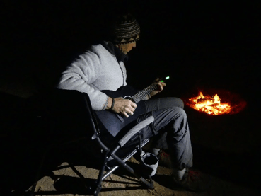 Als de zon uit ons zicht verdwijnt, wordt het merkbaar kouder. Tijd om het kampvuur aan te steken. En wanneer het hout op is, volgt daarop vanzelf bedtijd. Die nacht is het al weer volstrekt doodstil. Zelfs geen vogels. Het blijft onvoorstelbaar!
