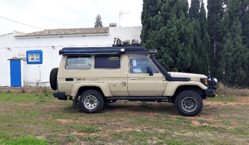 Vervoersmiddel : Toyota Landcruiser HZJ78 met AluCab hefdak