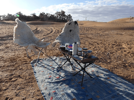 De tijd verstrijkt vlot en we zijn toe aan onze koffiestop met de allerlaatste koekjes. Na zo’n offroadtocht door duinen en over pistes is het heerlijk bijkomen op een camping. We kunnen douchen met warm water (blijft een ongekende traktatie) en al het zand uit onze kleren wassen. Paul en Jamiaa rijden na twee dagen door naar het zuiden en we nemen afscheid van elkaar. Wie weet, misschien ontmoeten we elkaar nog ergens.