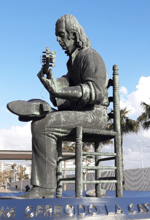We wandelen terug naar de auto en passeren het bronzen standbeeld van de wereldberoemde gitarist Paco di Lucia die in 1947 in Algeciras is geboren, overleden in 2014 in Mexico en nog steeds veel voor de stad betekent.