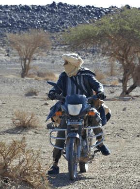 Als we de volgende ochtend ontbijten, blijkt de Rekkam helemaal niet zo uitgestorven te zijn zoals de Fransen ons eerder deden geloven. Eerst komt er een brommer van links, daarna een ezelkar met vrouw en kind en daarna een man van rechts op een brommer. Hij stapt af, komt naar ons toe en vraagt om sigaretten.