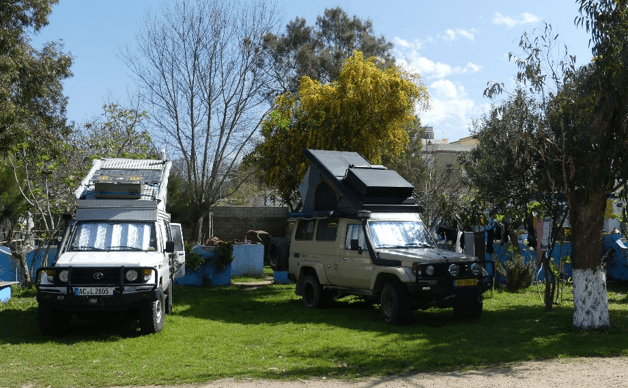Het is inmiddels donderdag 19 maart en al die tijd zitten we op dezelfde camping tussen veel Fransen en Duitsers. We zijn de enige Nederlanders, ook de enige met een 4×4. Onderling wordt er veel gesproken over een mogelijkheid om met de camper over te varen. De sfeer is goed en gemoedelijk. Een aantal Fransen laten zich niet weerhouden van een gezellig samenzijn tijdens het Franse traditionele apéro. Het gelach klinkt luid over de camping.