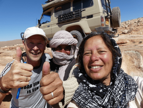 gehuurde 4×4 rijdt. Uiteraard worden er pistes gereden. Zij wachten de mensen op in Marrakech. Paul heeft jarenlange ervaring met reizen door Afrika. Jamiaa zorgt voor de maaltijden en de thee- en koffiestops. Een goed concept waarin tijdens de reis de gasten geen extra uitgaven hebben, met uitzondering van persoonlijke uitgaven zoals souvenirs en drankjes in een restaurant. De gasten zijn zeer tevreden en wij vinden het zeker geen te dure reis. Neem gerust een kijkje op hun site: www.4x4marokko.nl .