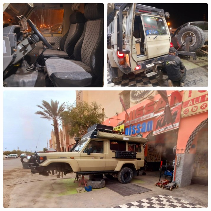 We zijn al dagen in Zagora. De afgelopen tijd heeft Ali Nassir aan onze Toy gewerkt. We brengen ’s morgens de auto en gaan op de vouwfietsjes terug. ’s Avonds halen we de auto weer op, omdat we daarin moeten slapen. Wat is er gedaan?