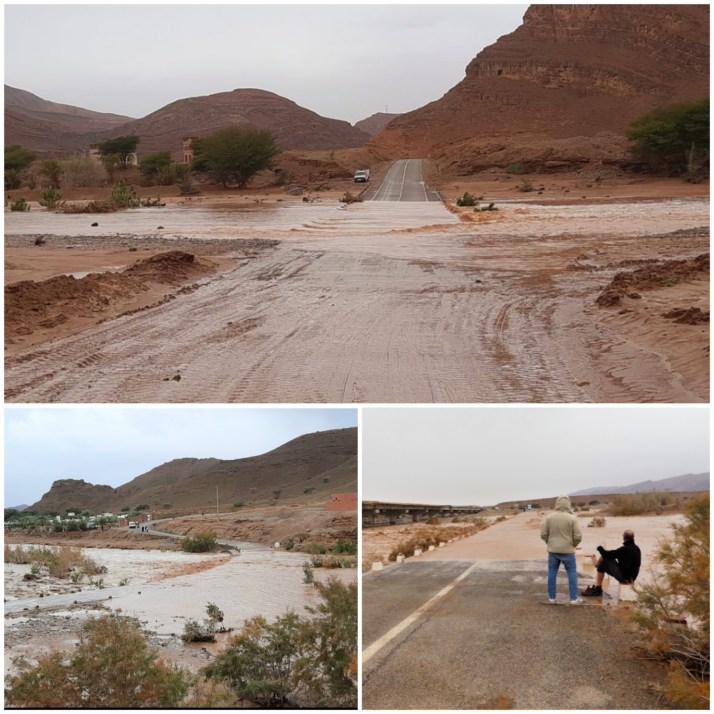 We besluiten om over de weg naar Guelmim te rijden, met als eindbestemming Fort Bou Jerif. Het blijkt een lange tocht met hindernissen. Halverwege Tata en Akka kunnen we niet verder vanwege het bruine water dat bulderend door het oued Tata stroomt. Een rij auto’s, inclusief Marokkaanse 4×4’s, staat te wachten. Jeroen checkt voor de zekerheid, want onze auto kan maximaal door 70 cm water. Hij doet zijn schoenen en sokken uit en loopt door het water, nagestaard door de verbaasde Marokkanen. Het water gaat al gauw tot boven zijn knieën en de stroming gaat hard, zéér hard, tè hard.