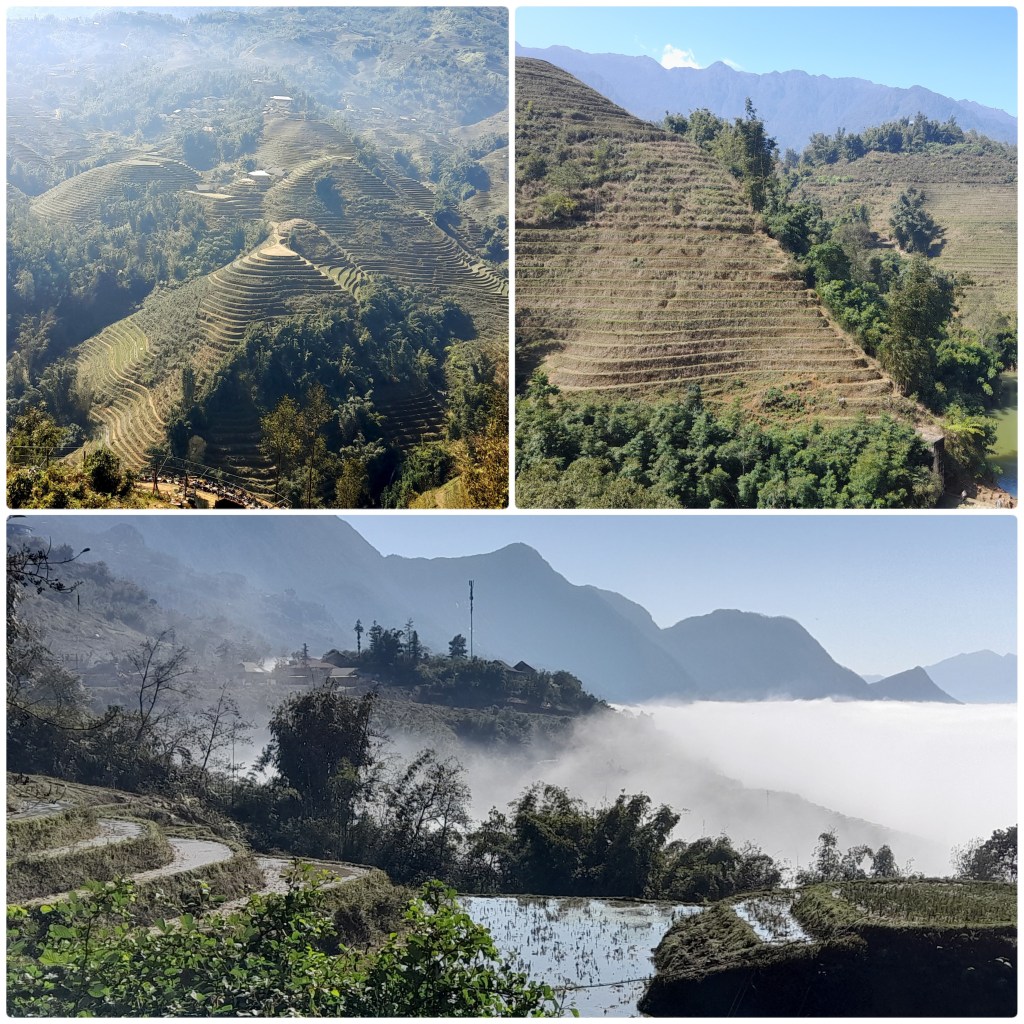 Van Ha Giang zijn we vervolgens naar Sa Pa gereisd, een bustrip van enkele uren door de bergen en langs de Chinese grens. In Sa Pa liggen de hoogste bergen en dus zijn er veel wandel- en klimroutes. Ook is er veel water, waardoor rijstbouw mogelijk is. De stad Sa Pa ligt op 1700 meter hoogte en dus kan het er goed koud worden. Wij hadden ongelooflijk veel geluk, want na een lange periode van slecht weer, brak de zon door en konden we in een T-shirt wandelen door de rijstvelden. De rijst was nog niet geplant, dus het zag er nog een beetje kaal uit, maar het was voor ons schilderachtig genoeg.