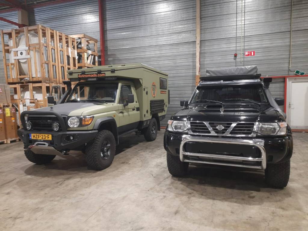 De Tembo Toy staat klaar om samen met de Nissan in de container te gaan