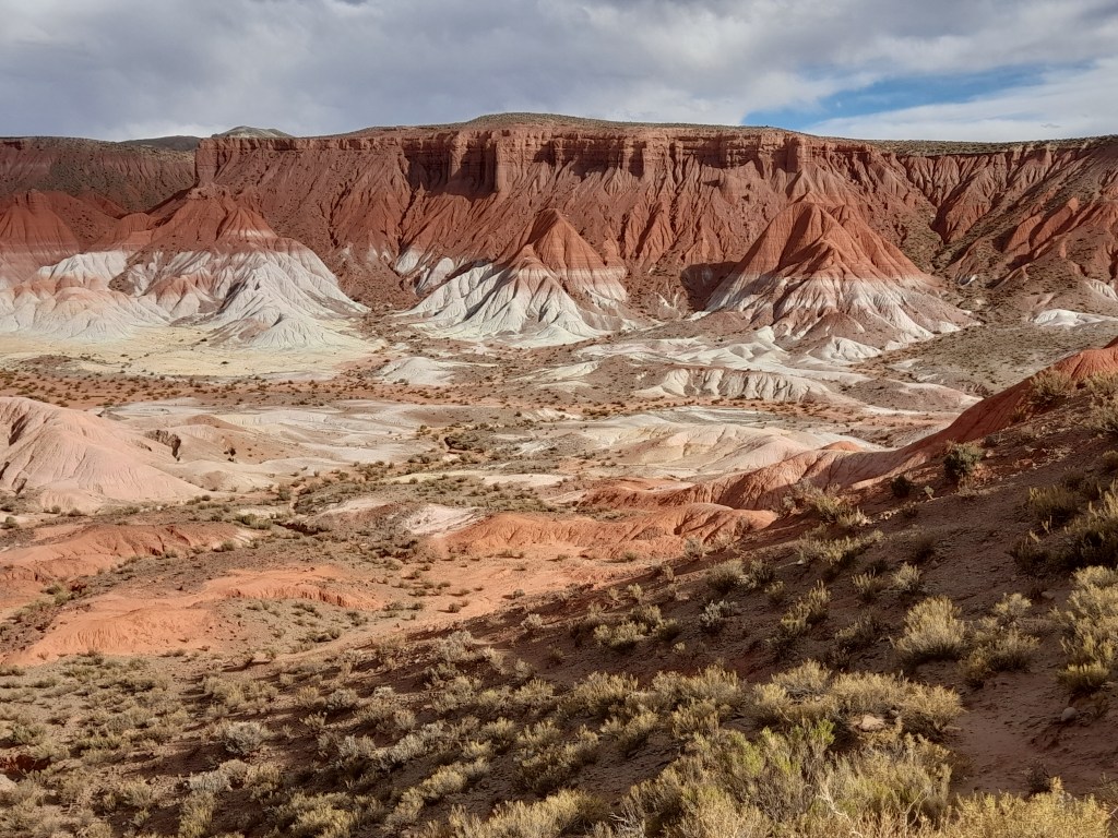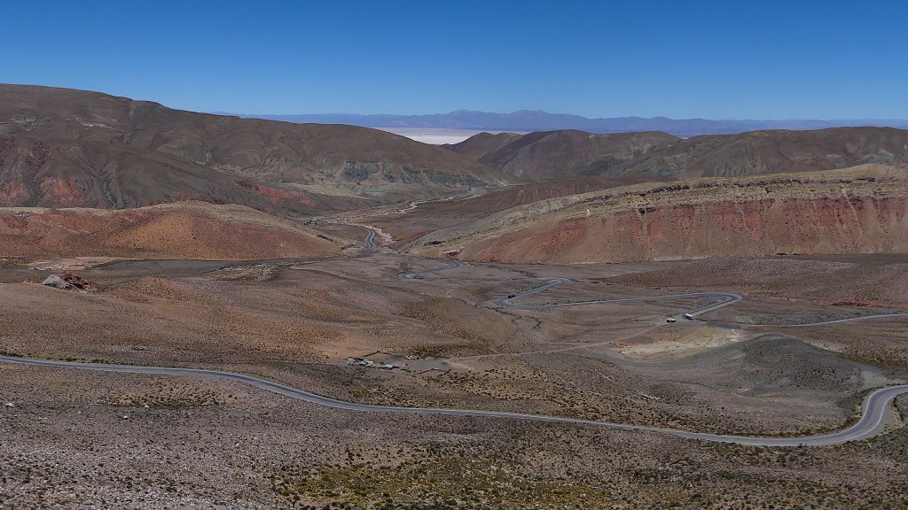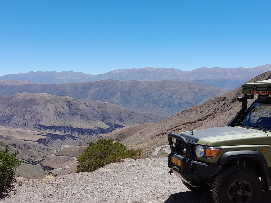 Na het dorp Humahuaca vervolgen we de reis over ruta 9 (RN9), een goed onderhouden asfaltweg met hier en daar een ‘pothole’ (kuil). Onderweg zien we wederom de prachtige natuur met gekleurde bergen bij de plaats Tres Cruses, oueds (droge rivieren) en stappen we regelmatig uit voor de fotostops. Na 185 km arriveren we in de meest noordelijke plaats van Argentinië La Quiaca. Er is geen enkele camping, dus parkeren we in een straat en de mensen bekijken bewonderend naar de auto. We gaan op tijd op stok om morgen uitgerust aan de Ruta 40 te beginnen.