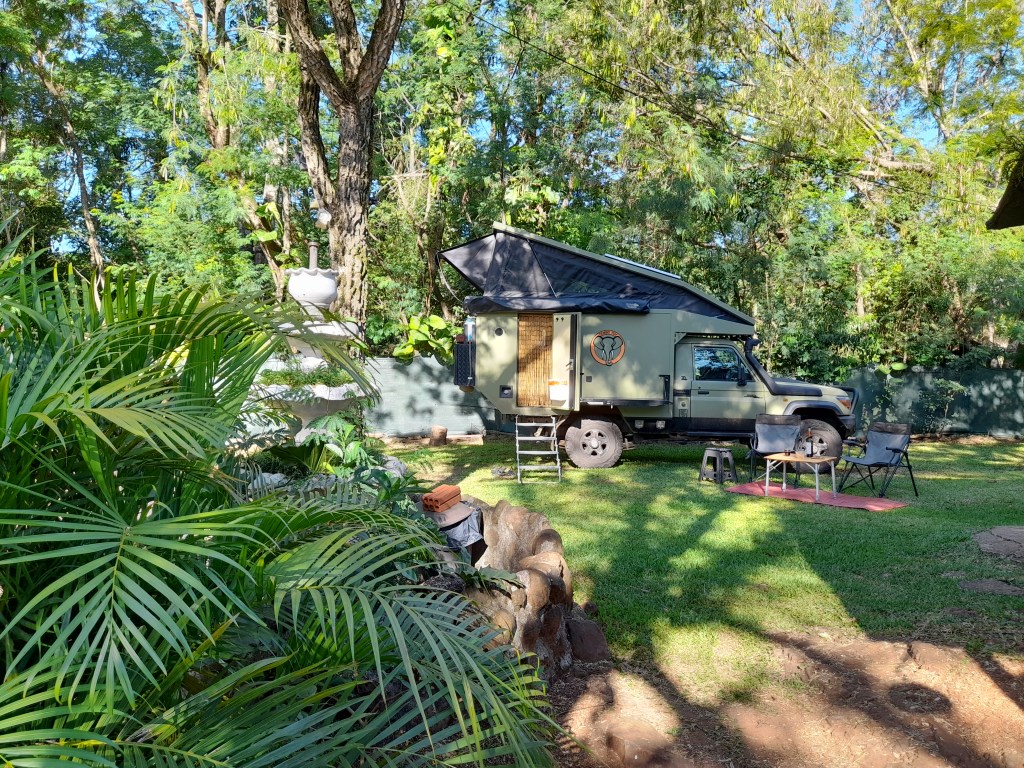 Eind van de middag komen we aan op de afgesproken plek in Salta. Het is het gemeentelijke buitenzwembad Camping Carlos Xamena, waar een aantal camperplaatsen zijn. Wij sturen onze Tembo Toy naast de ‘grote jongens’, 3 truckcampers van Nederlandse Overlanders die als Dutchbat bij elkaar staan. Later sluit nog een vierde truckcamper aan. We maken kennis met Branco & Ingrid, Jeroen & Sacha en Arend & Akkie, allemaal zeer ervaren Overlanders en allen met een vrachtwagencamper. Onze Tembo Toy is opeens een onderdeurtje. Op kerstavond toveren de dames een kerstster, een kerstboompje, kerstlichtjes en een kerstkleed voor over de tafel tevoorschijn en we wanen ons met een graadje of 18°C in onze zomerkleding in een warme kerstsfeer. We eten met elkaar, de gesprekken gaan vooral over de reizen en om middernacht barst het vuurwerk los. We vragen ons af hoe de Argentijnen oud & nieuw vieren. Dat zullen we nog beleven. Wij gaan naar bed in de hoop op enige nachtrust en mijmeren nog wat over de prachtige landschappen die we hebben doorkruist.