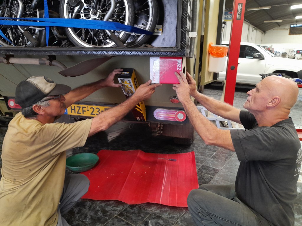 Jammer genoeg hebben we een probleem met benzinelucht in de camperunit van de auto. Onze Toyota is vanuit de fabriek geleverd met een tweede tank. Vanwege de aanhoudende benzinelucht is de auto in Nederland al herhaaldelijk terug gegaan naar onze bouwer om het probleem te verhelpen. Meerdere klanten hadden dezelfde klachten en die zijn inmiddels opgelost. We dachten dat het probleem bij ons ook was verholpen, maar de geur kwam aan het begin van de reis in Montevideo toch terug. Het is een groot raadsel wat nou precies de oorzaak is. We bespreken wat we zouden kunnen doen en besluiten om alle slangen buiten de cabine om te laten verplaatsen, hopende dat dit de oplossing is. Bij de garage genaamd ‘1/4 Milla Truck Service’ maken we kennis met de eigenaar Guillermo en de werkmannen. Als de benzinegeur hem tegemoet komt, bespreekt hij met Jeroen wat er gedaan moet worden: alle slangen gaan buitenom in een aluminium beschermingsbuis en de vuldop wordt verplaatst. Eerst maken ze een mal en ze zoeken contact met het bedrijf die aluminium kan lassen. De klus duurt uiteindelijk drie dagen en wij verblijven in een hotelletje in het centrum.