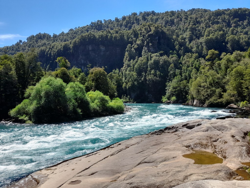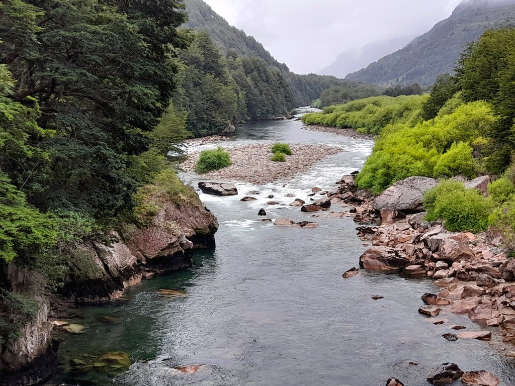 Wat hebben we vandaag veel water gezien. Nee, geen regenwater, wel meren, rivieren en een zeearm. We ontbijten in een zonnetje en pakken op ons gemak in. Jeroen wordt hier voor de tweede keer gestoken door een wesp. Gelukkig werkt het vacuümpompje goed en is Jeroen niet allergisch, maar het blijft vervelend. Vanaf het meer Lago Lonconao rijden we via een schitterende route langs Río Futaleufú, Lago Yelcho, Río Frío, Río Palena, Lago Risopatron naar het dorp Puyuhuapi dat aan een zeearm ligt van de Zuidelijke Stille Oceaan. De reis gaat over de W905 en Ruta 235 (beiden ripio) en daarna over Ruta 7 (asfalt), de bekende Carretera Austral. Bij de brug over Río Futaleufú zien we het water snel stromen, perfect voor kajakken en raften. Toevallig zien we watersporters varen en maken we foto’s en nemen we video’s op. We vinden dit spectaculair om te zien en Jeroen meldt dat wij ook nog eens gaan raften. Ina kijkt daarbij bedenkelijk.