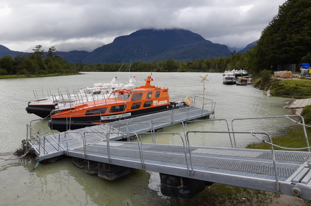 Het is tijd voor een bakkie en we bestellen een cortado doble. Vervolgens rijden we 90 km over wederom een slechte ripio (de X-728) naar het haventje ‘Bahía Exploradores’ vanwaar morgen de boot vertrekt. Het is een prachtige en gevarieerde rit langs meren, verschillende rivieren en uitzicht op bergen met gletsjers. We genieten er volop van. Na ruim drie uur bereiken we het haventje dat eigenlijk niet meer is dan een aanlegsteiger. Het waait hard. De Tembo Toy parkeren we op de parkeerplaats, we maken het noodbed gereed en houden het hefdak dicht. Op deze manier kunnen we zonder lawaai van het wapperende tentdoek vannacht ongestoord slapen.