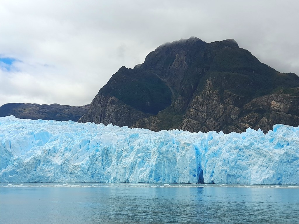 De wekker gaat en meteen checken we het weer buiten: Ai, zwaar bewolkt met laag hangende wolken. Alles is grijs, minstens 50 tinten grijs. We zoeken de juiste boot en dan verzamelen we ons rond de kapitein die onze namen (onverstaanbaar) afroept. De groep telt 18 personen en de bescheiden boot heeft nog 2 plaatsen vrij. Met 40 km/u varen we over het fjord, ondertussen ons ontbijt nuttigend (tosti hamkaas met oploskoffie). Langzamerhand wordt het lichter en na ruim een uur varen we tussen de blauwe ijsschotsen. De kapitein legt de boot stil en dirigeert ons naar het dek en zegt: “Heel stil zijn, want er ligt daar een zeeluipaard!” Een reus van een beest maakt knorrende en grommende geluiden en we vinden het magisch. De ijsblauwe gletsjer ligt in de verte op ons te wachten en we varen er naar toe, daarbij regelmatig botsend tegen brokken ijs. Het is hoegenaamd windstil, droog en een waterig zonnetje komt tevoorschijn. De gletsjer laat constant van zich horen: het rommelt, het kraakt, het knalt en laat met donderend geweld grote brokken ijs het water in vallen. Fantastisch en spectaculair!