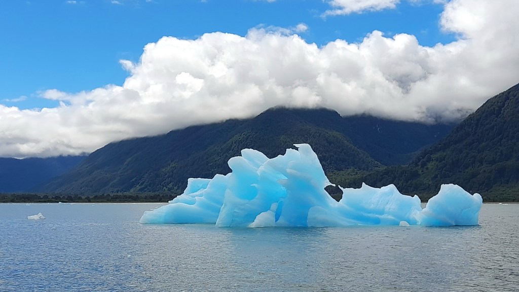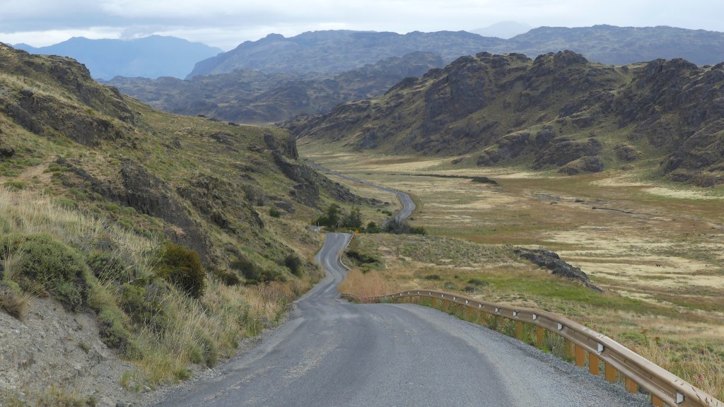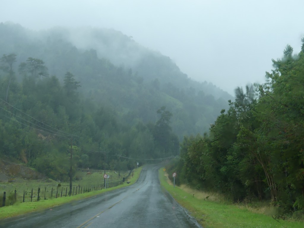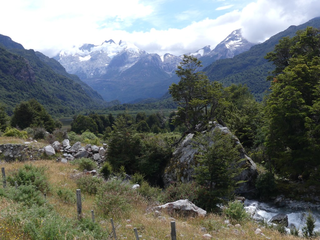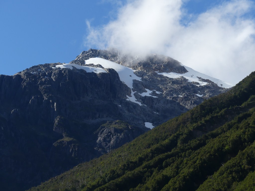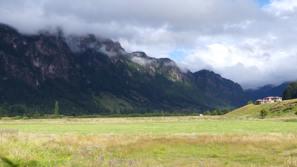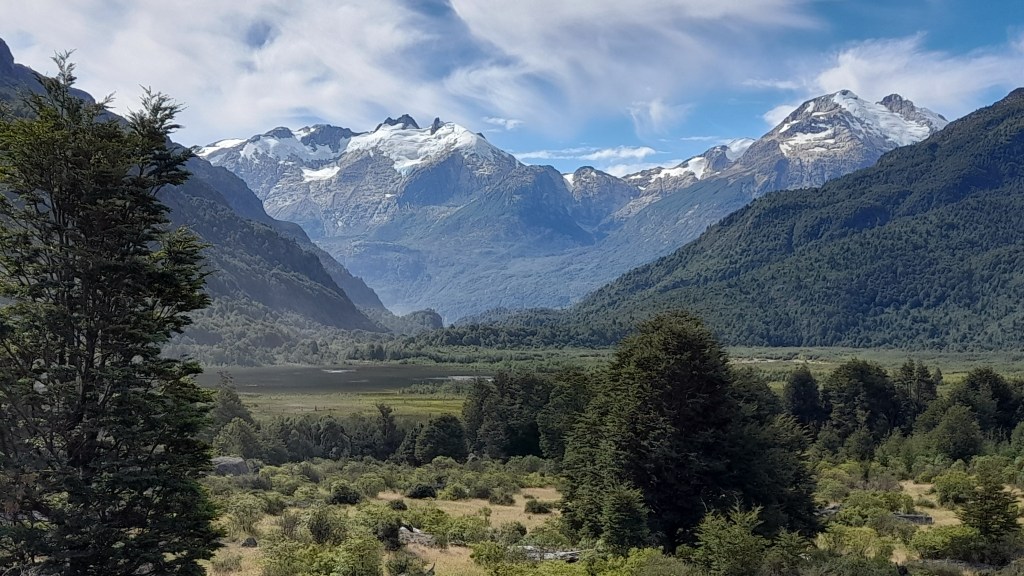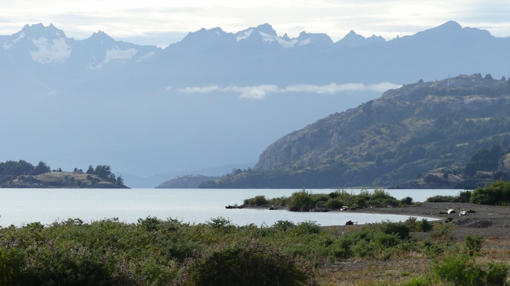 Onderweg zien we bergen van maximaal 2500 meter hoog met besneeuwde toppen. Er zijn zelfs gletsjers te zien. Als we langs het uitgestorven gehucht Villa Santa Lucía-Ciudadela rijden, hebben we zin in koffie. We nemen buiten plaats en genieten van de koffie met uitzicht op een berg met een besneeuwde top. We nemen er iets lekkers bij onder het mom van ‘vergelijkend warenonderzoek van gebakjes in Chili’. De route blijft beeldschoon en het is volop genieten, maar een mooie bivakplaats vinden is lastig. Tegen het eind van de dag neemt de bewolking toe en tegen half zes vinden we een overnachtingsplek in het dorp Puyuhuapi aan de zeearm op Camping Rio Mar. Het is niet veel soeps, maar we hebben ons eigen huisje bij ons. ’s Nachts gaat het regenen en ook voor de komende dagen wordt er slecht weer verwacht. We mogen niet mopperen, want de laatste 3 maanden hebben we vooral heel veel zon gezien.