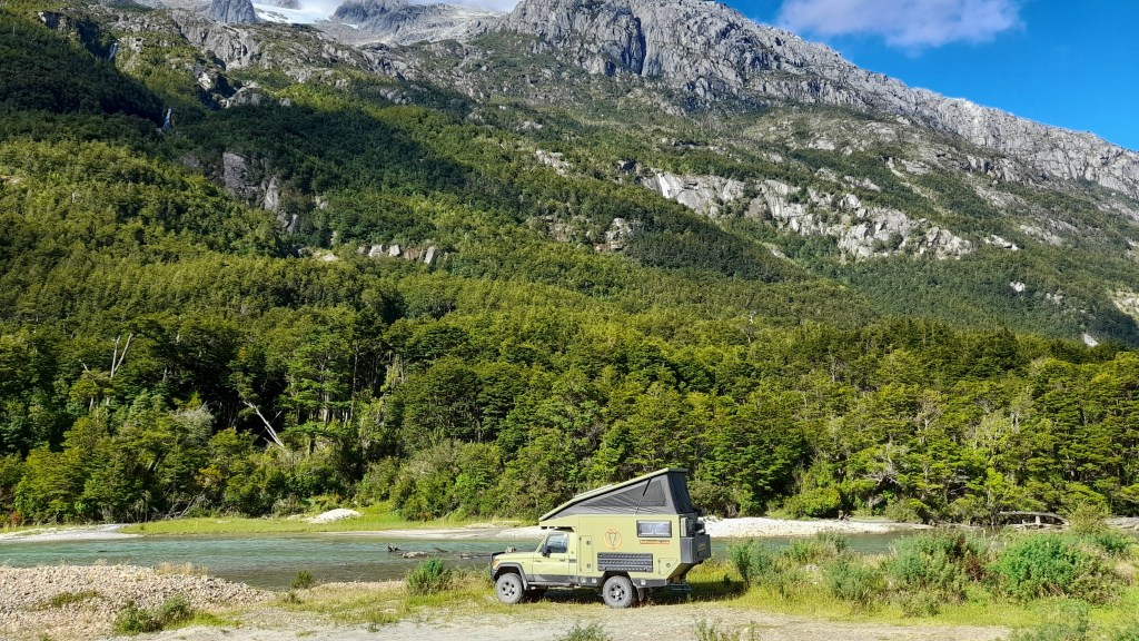 We zijn in het Parque Nacional Patagón in Chili. Vannacht waaide het behoorlijk waardoor we vanwege het lawaai van het klapperende tentdoek geen oog dicht konden doen. Gauw het noodbed opgemaakt, het dak dicht gedaan en daarna heerlijk uitgeslapen. Als we eind van de ochtend de zon volop zien schijnen, lopen we naar buiten. De temperatuur is aangenaam. Naast ons staat een 4×4 uit Colombia en we maken kennis met Paula en Juan. Nieuwsgierig als we zijn nemen we een kijkje in elkaars auto. We zijn onder de indruk hoe zij zelf de cabine hebben gebouwd. De auto is kleiner dan die van ons, alles zit er in wat wij ook hebben, sfeervol ingericht en we complimenteren hen met het behaalde resultaat.