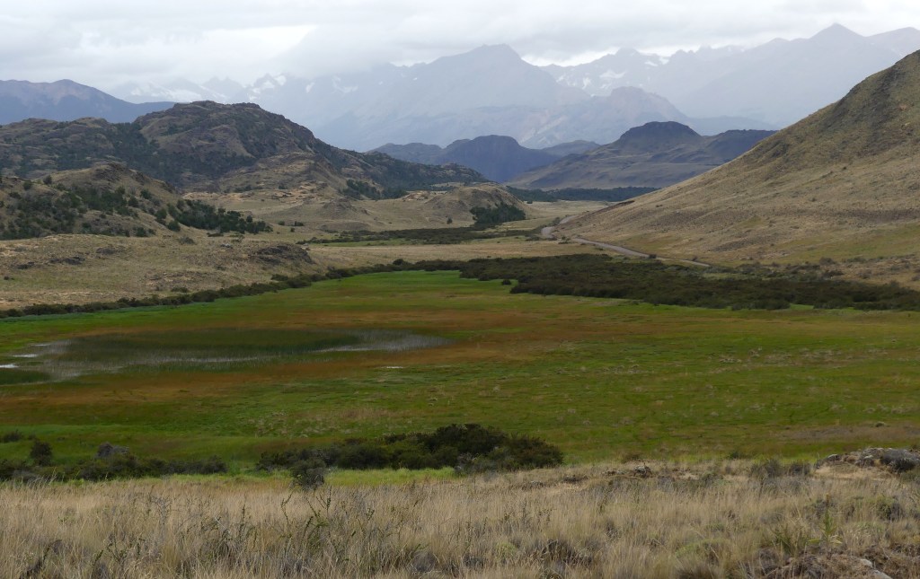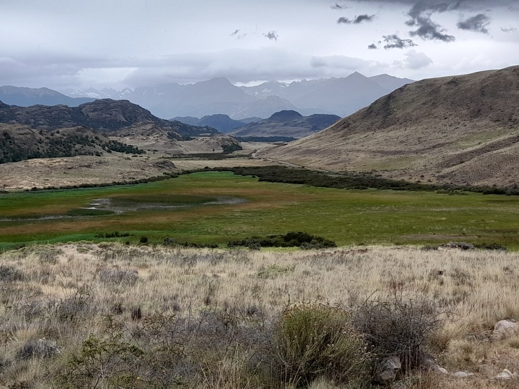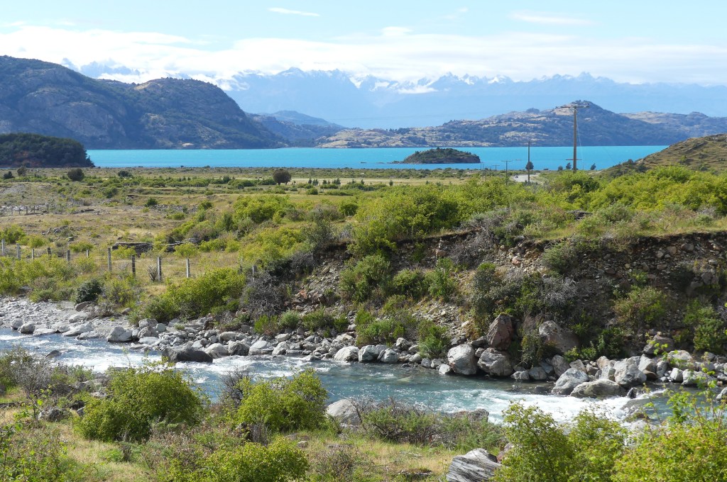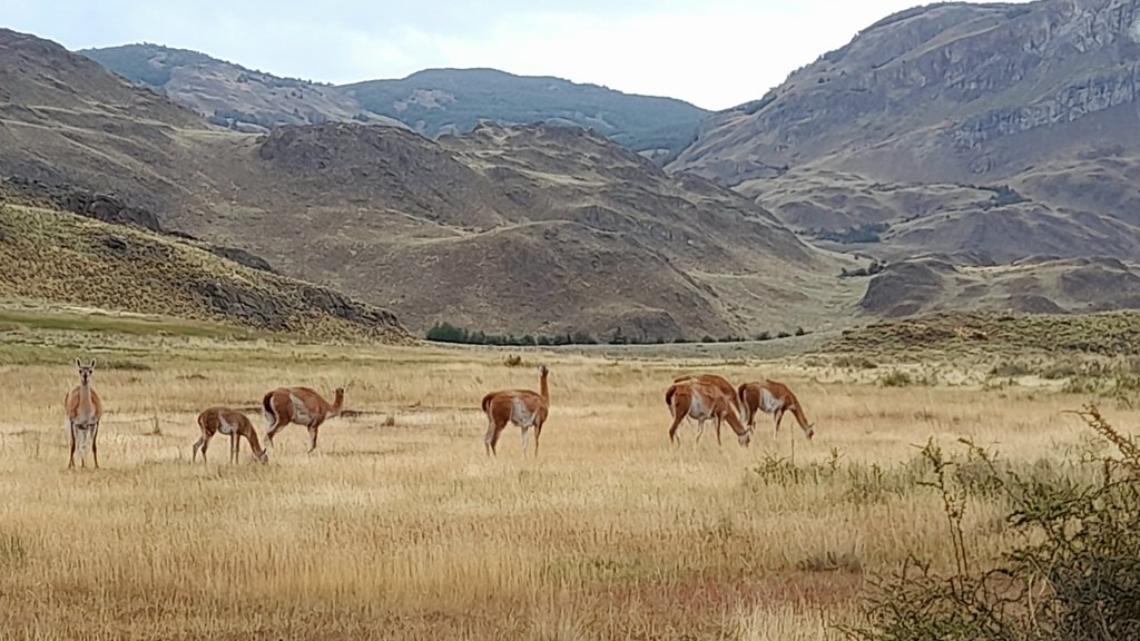 In de middag verlaten we het dorp Puerto Río Tranquilo, rijden over de Carretera Austral langs het Lago General Carrera en verbazen ons over de schitterende uitzichten. De verrassing is groot, want we rijden over een zeer goede ripio. Perfecto! Het kan dus wèl, zeggen we tegen elkaar. Er is zelfs een deel met asfalt. Vervolgens verlaten we de Carretera Austral en rijden de ‘leegte’ in naar het ‘Parque Nacional Patagón’. Een schitterend landschap ontvouwt zich voor ons, met kuddes wilde guanaco’s en een bord dat vermeldt dat we de habitat van de puma binnentreden. Toe maar! Het is lastig om hier een bivakplek te vinden: in de bergen is het te steil, in de valleien met rivieren en moerassen te nat. Bij camping Casa de Piedra mogen we op de parkeerplaats staan. We kunnen niet terecht op het kampeerterrein zelf, want deze is alleen toegankelijk via een loopbrug. We staan aan de rivier met bergen om ons heen. Ah, weer een wereldplek!