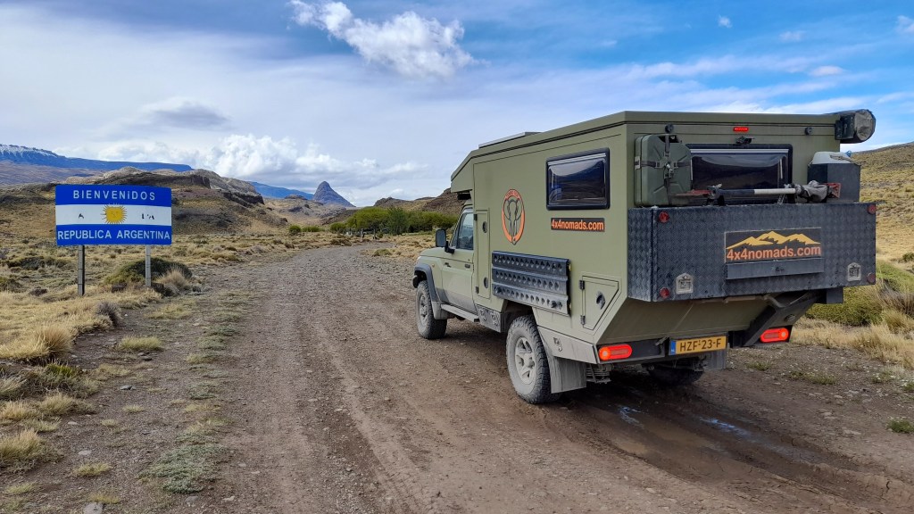 Wakker worden, gordijnen openen en wat zien we op de berg? Sneeuw! Altijd is het onvoorspelbaar hoe het weer in de bergen is. Gisteren zonnig en vandaag koud en zwaarbewolkt. Als we naar de grenspost Paso Roballo van Chili rijden, zien we hoge besneeuwde bergtoppen met gletsjers. Een prachtig gezicht, vooral omdat af en toe de zon op de toppen schijnt. De procedure bij de grens gaat voorspoedig. Online hebben we de ‘salvoconducto’ ingevuld, een document dat toestemming geeft om Chili te kunnen verlaten als er geen openstaande juridische belemmeringen zijn. Dus mocht je bijvoorbeeld een openstaande verkeersboete hebben, dan mag je de grens niet over. Bij ons is alles ok en we rijden over een lang en prachtig deel ‘niemandsland’ door naar de Argentijnse grenspost. Hier gaat de procedure handmatig. In een groot boek worden onze persoonsgegevens opgeschreven en krijgt de Toyota voor maximaal drie maanden een TIP (Temporary Import Permit). De beambte controleert in de auto of we verse etenswaren hebben. Die hebben we niet, hij opent de poort en hij wenst ons een goede reis in Argentinië.