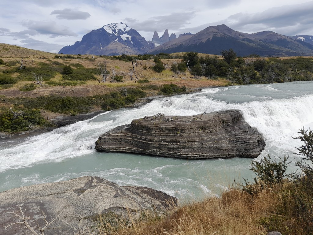 Bij ‘Cascada Río Paine’ genieten we van onze zelfgemaakte koffie met uitzicht op de waterval. Een jonge vos struint ontspannen achter ons op het veld op zoek naar eten. Ook zien we twee kuifcaracara’s (caracara plancus), roofvogels die behoren tot de valkachtigen. Bij de tweede waterval, Salto Grande, hebben we uitzicht op de Cuernos. Aan het einde van de dag vinden we een plekje op de mooie camping Lago Pehoé, met uitzicht op de imposante ‘Cuernos del Paine’. ’s Avonds eten we in het restaurant waar de reusachtige parrilla (BBQ) voor sfeer en warmte zorgt.