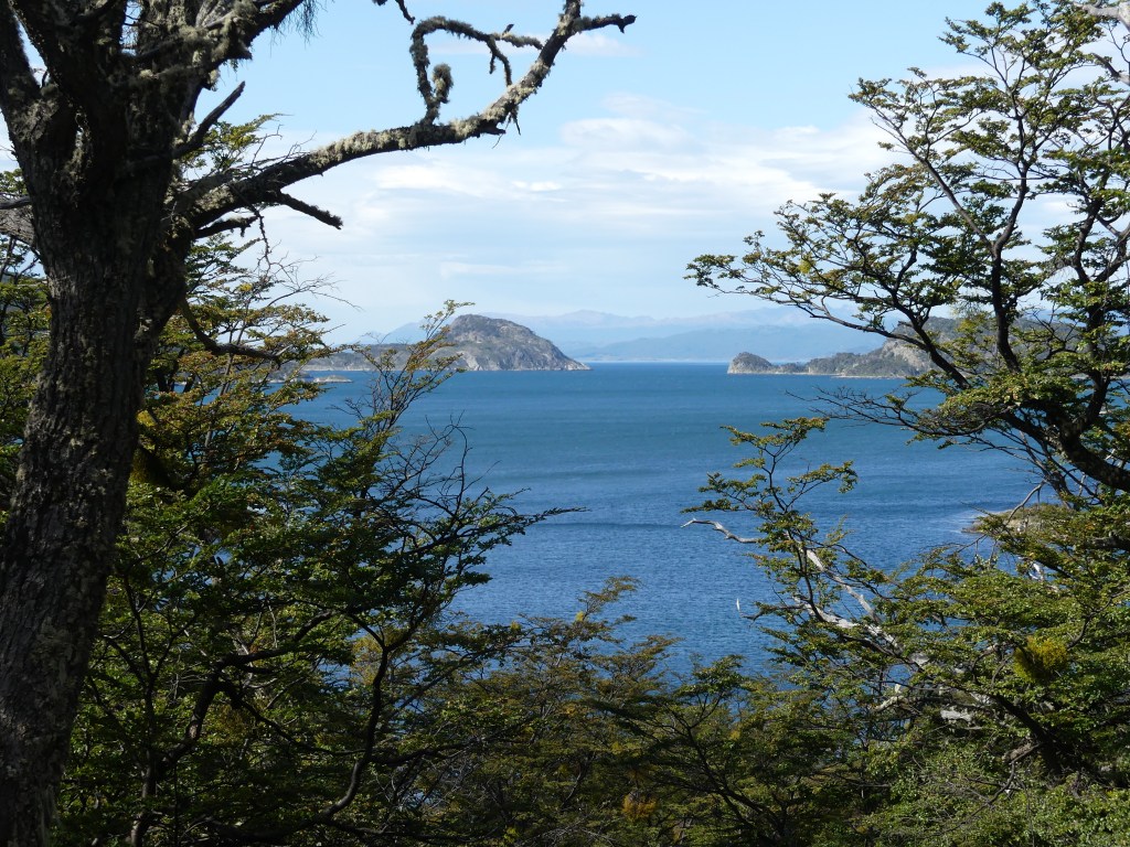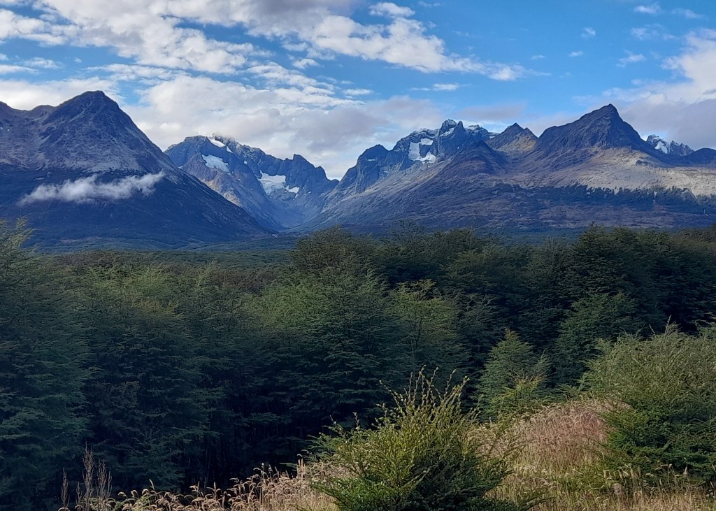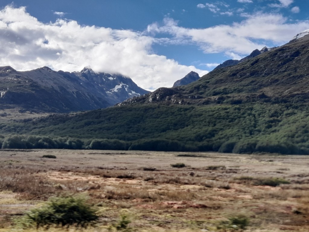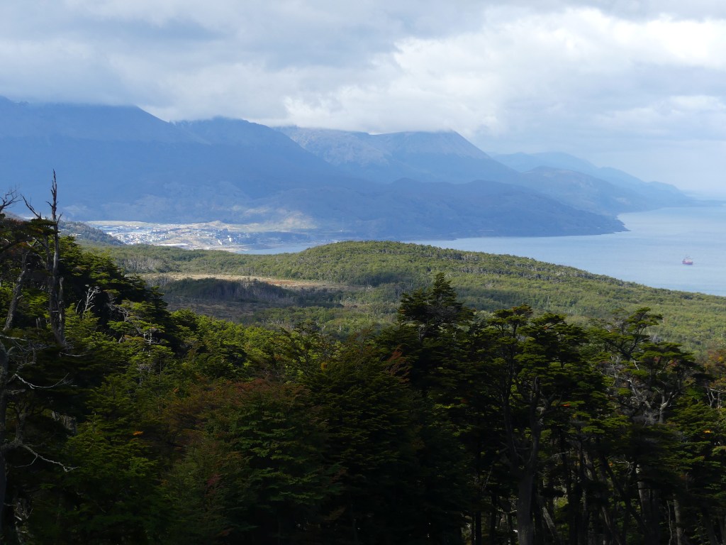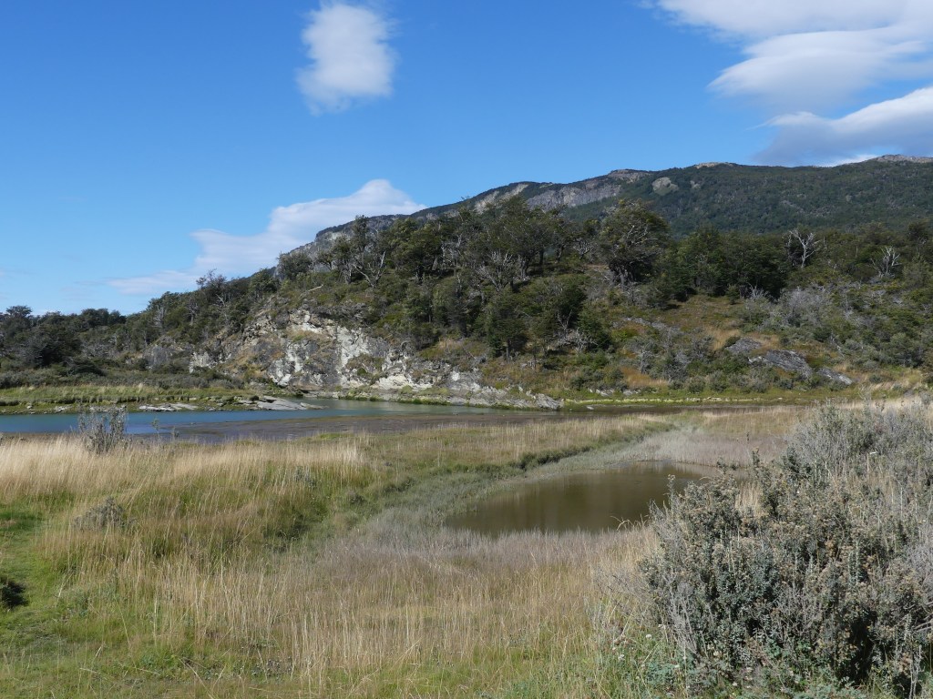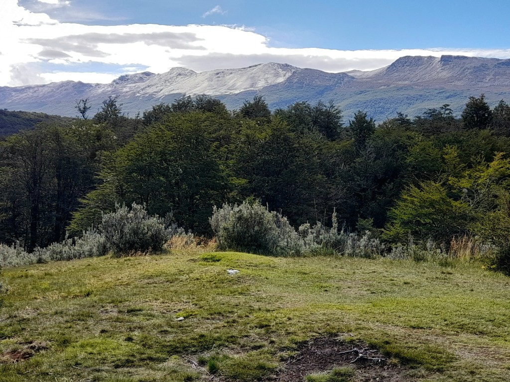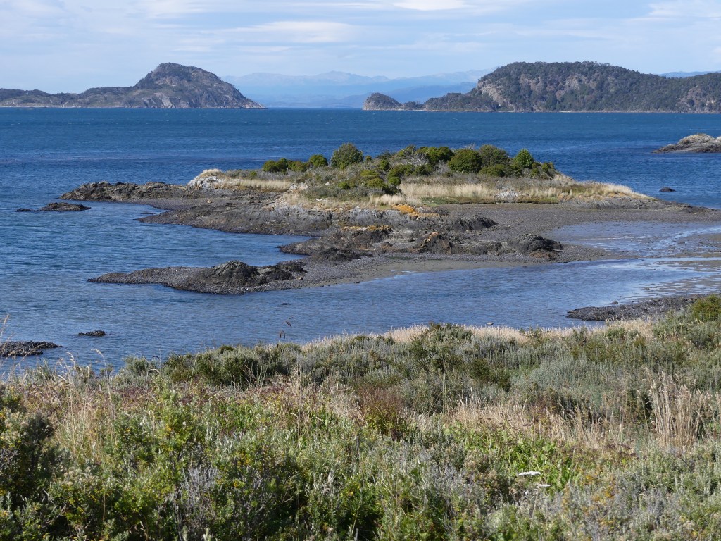 We worden uitgezwaaid door de zeer aardige hoteleigenaar die ons nog een ontbijt aanbiedt en we rijden in ruim een uur naar de grens met Argentinië over het kenmerkende steppelandschap van de pampa. Het blijft uitkijken voor de guanaco’s die soms onverwachts oversteken. De stille getuigen van aanrijdingen liggen in de berm. Vlot zijn we de grens over, we zijn weer in Argentinië en gaan in Rio Grande boodschappen doen en tanken weer goedkoop. Het scheelt €0,30 per liter met Chili, dus dat is de moeite gezien het exorbitante benzineverbruik van de Toy. Het landschap verandert, er zijn meer bomen (veelal dood) en de heuvels worden hoger. Volgens de meteorologische kalender begint vandaag op 1 maart de herfst. De afgelopen tijd hebben we onderweg al wel wat herfstkleuren gezien, maar de vegetatie hier is voornamelijk naald-en bladhoudend en dus blijft het redelijk groen. Ina heeft een leuke plek gevonden aan zee en we nemen de ripio. De weg is ongeveer 50 kilometer lang en loopt door het charmante landschap van Vuurland, met diverse typische ranches, lengabossen met hun karakteristieke ‘oudemannenbaard’-bomen en guanaco’s die door het landschap zwerven. Het is verrassend mooi!