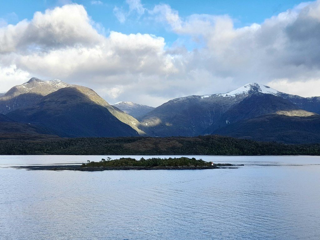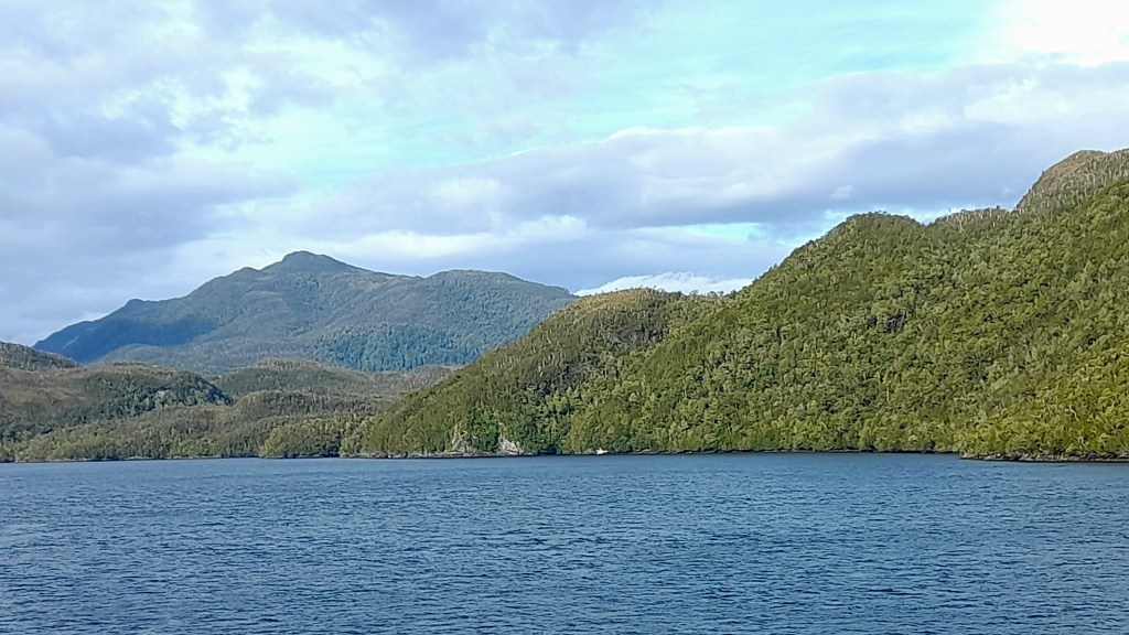Vannacht was het een onrustige en lawaaierige nacht. Onophoudelijk beukten de golven tegen de boot, de kasten kraakten voortdurend en we rolden van de ene naar de andere kant. Ina heeft redelijk geslapen, Jeroen wat minder. De Golf van Peñas hebben we overleefd en als we wakker worden, vaart de boot op open zee. Er staat nog een behoorlijk zware deining, we lopen voorzichtig door de gang en de trap af, bereiken de eetzaal en al waggelend lopen we met een vol dienblad naar een tafel om te ontbijten. Er worden antislipmatjes uitgedeeld en soms glijden we met stoel en al langs de tafel. Vandaag heeft de kapitein goed nieuws. Het is nog een dag en een nacht varen en dan arriveren we donderdagavond laat in Puerto Montt. Na een aantal uur verlaat de boot de open zee en vaart weer in de fjorden. Vanaf nu is het gedaan met de hoge golven. Afwisselend zien we laaghangende bewolking over de heuvels, stukken blauwe lucht en soms zon. De temperatuur is verrassend aangenaam. Even schijnt de zon zo fel dat we na dagen de zonnebril weer tevoorschijn halen. Aanstaande maandag gaat de auto naar de garage in Puerto Varas. Dit weekend wordt het mooi weer, dus maken we alvast een reisplan voor de komende dagen. Wat hebben we daar zin in!