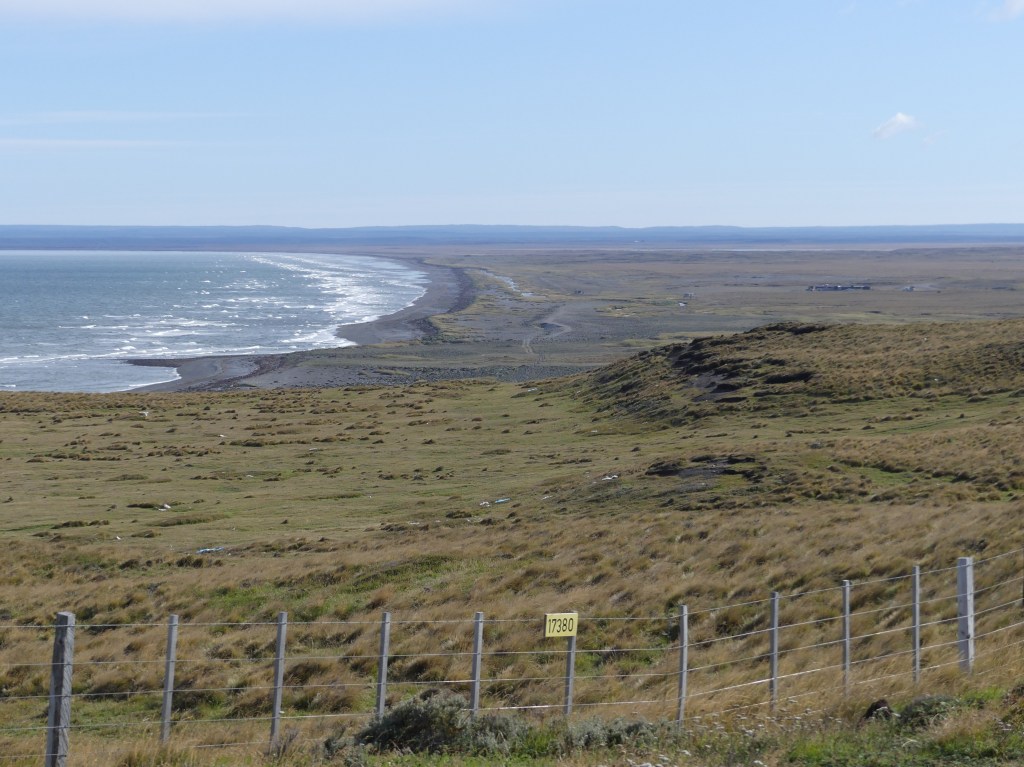 Nog niet eerder hebben we naast zo’n vreselijke lawaaiweg geslapen. In een daktent hoor je alles en omdat het gisteravond niet waaide, hebben we besloten boven in ons bed te slapen. Helaas, de vrachtwagens en auto’s rijden tot ver in de nacht over de met betonplaten bedekte weg. Kedeng kedeng kedeng! Edoch, worden we redelijk uitgerust wakker, Jeroen met behulp van de oordopjes, Ina heeft nergens last van en slaapt overal doorheen. Vandaag willen we naar de Argentijnse oostkust gaan, naar het plaatsje Río Gallegos waar bij ‘Punta Loyola’ de ruta 40 begint. We zijn bij het eind van ruta 40 in la Quiaca in Noord-Argentinië begonnen, hebben inmiddels de grootste delen van deze ruta afgelegd en we willen eindigen bij het begin. Totaal 5120 km. Na het ontbijt rijden we naar de Chileense grenspost waar we inderdaad zonder Salvoconducto door kunnen rijden naar Argentinië. De paspoorten worden afgestempeld en de TIP (tijdelijke invoer van de auto) ingenomen. We rijden de paar kilometer niemandsland door naar de Argentijnse grens. Als de Argentijnse vrouwelijke beambte van ons hoort dat we na Rio Gallegos naar Ushuaia gaan, adviseert ze ons dat de weg via Chili korter en veel mooier is. We hoeven dus helemaal de grens niet over. Ze is nogal stellig en betrekt ook een andere collega erbij. Ze lijkt niet bereid ons door te laten, want ze vindt echt dat onze voorgenomen route onzin is. De collega haalt wat de schouders op. Om een einde aan de voortslepende situatie te maken besluiten we om maar te doen wat ze zegt. En hoe doen we dat dan met de TIP? “No hay problema”, zegt ze, “leg het daar bij de Chilenen maar uit en dan komt het allemaal goed.”